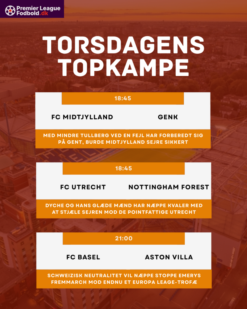 Aston Villa og Nottingham Forest har begge overkommelige opgaver ude, men inden vi vender blikket mod de engelske hold, skal vi lige et smut hjem til Danmark.