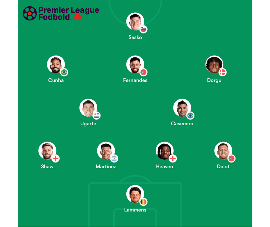I midtbanens maskinrum ventes Casemiro og Manuel Ugarte at danne en defensiv duo. Patrick Dorgu, Matheus Cunha og muligvis Bruno Fernandes får ansvaret for at skabe chancerne bag den forreste angriber, Benjamin Šeško.