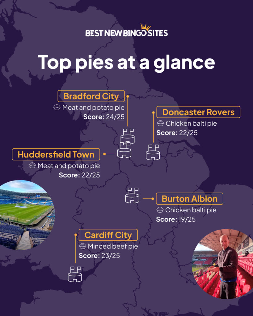 – Jeg har spist pies i over 40 år, og jeg nyder dem stadig. Kødtærten med kartoffel fra Bradford City var et klart højdepunkt – perfekt både i fyld og dej. Min favorit udebanetur var til Cardiff City, hvor kødtærten holdt mig både mæt og varm, fortæller Ian.