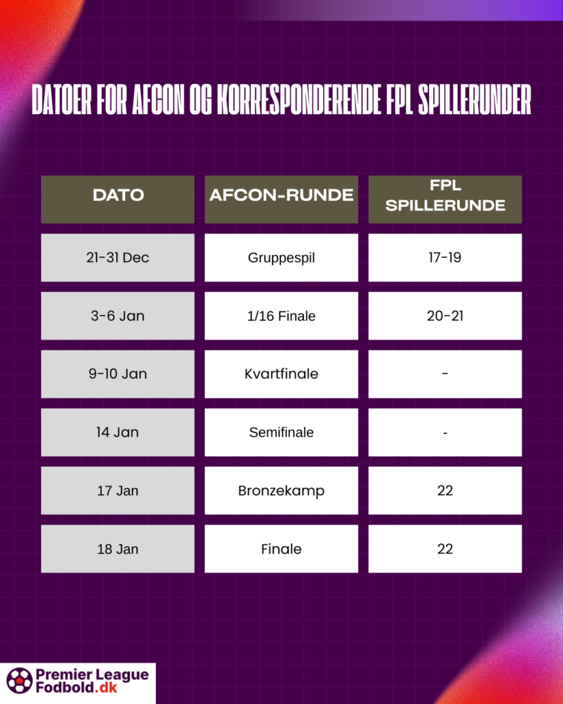 Fra et FPL-perspektiv strækker AFCON sig fra runde 17-22.